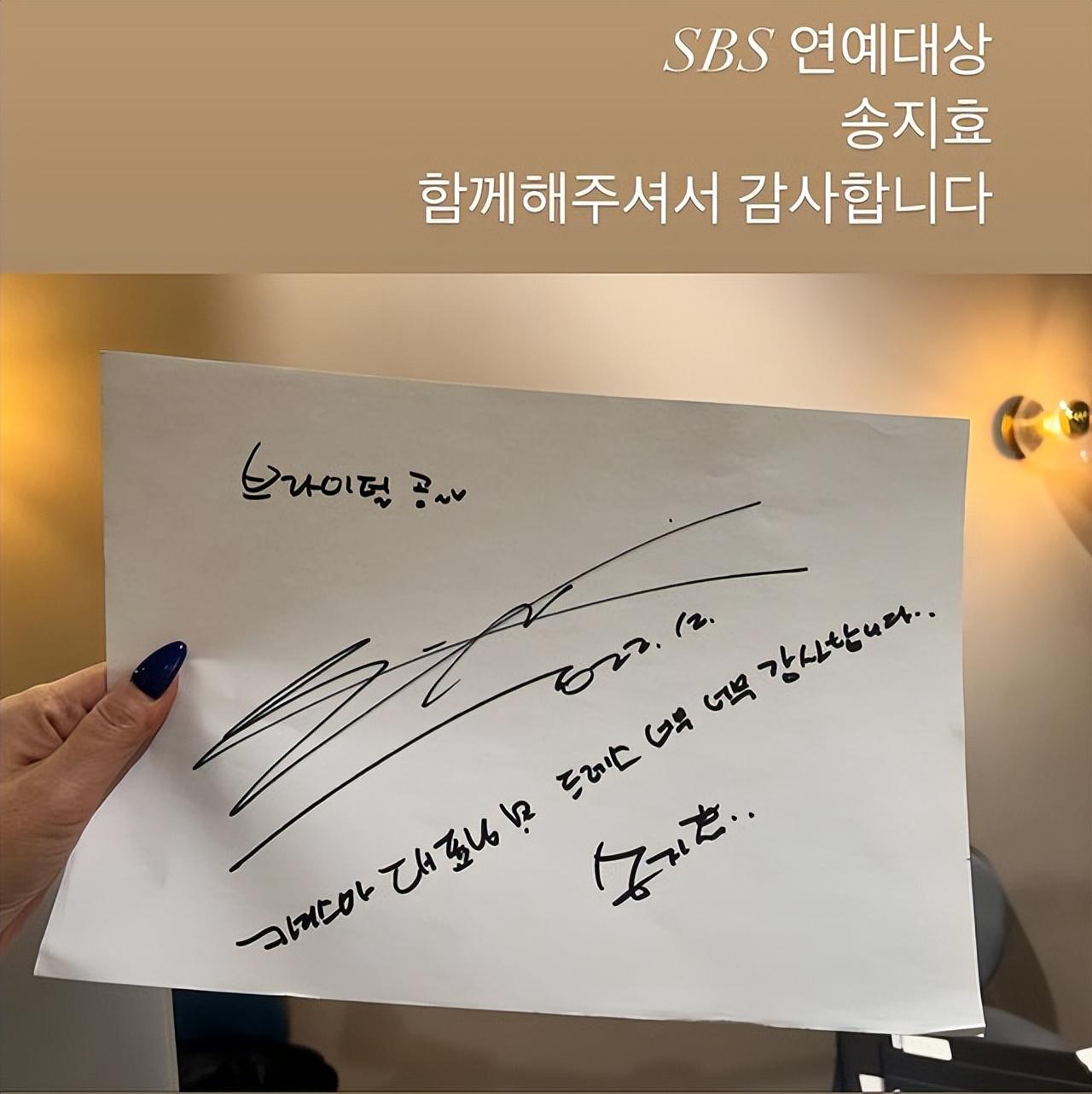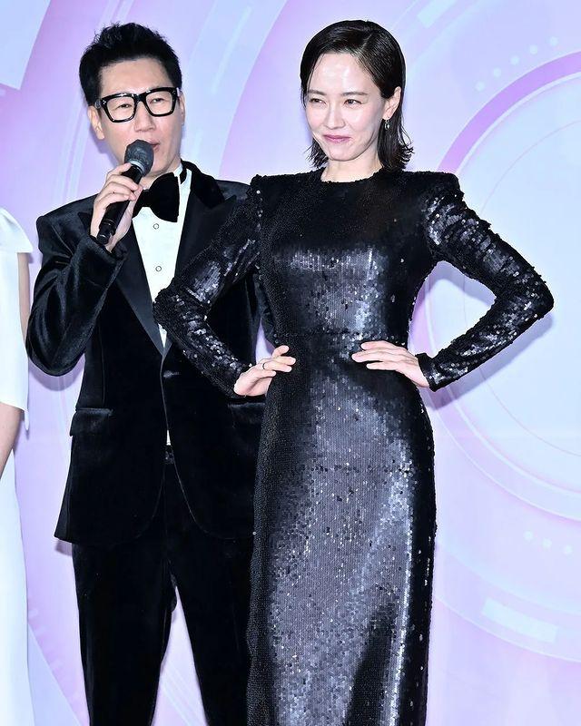 17日电视台SBS举办演艺大赏颁奖典礼,韩综《Running Man》成员刘在锡、全昭旻、池锡辰、宋智孝、金钟国合体出席,Haha和梁世灿则是因染疫缺席。宋智孝当天穿着一身垫肩黑色亮片礼服登场,贴身的服装面料勾出她超「腰瘦」的身形,窈窕曲线绝美,此外,当晚宋智孝与金钟国的互动备受关注,红毯上两人对看了几秒,让喜欢嗑「懵钟CP」的粉丝们感觉甜甜的。