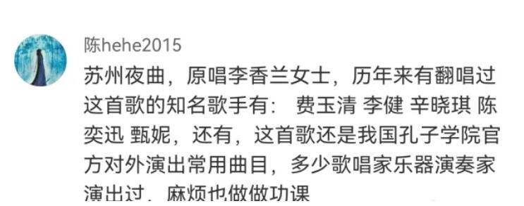 虽然李健有些躺枪的意思,但笔者发现,早在李健的《枫桥夜泊》刚推出时就有网友公开质疑这首歌的原始版本《苏州夜曲》不合适:是一首我们不应听见的歌曲。