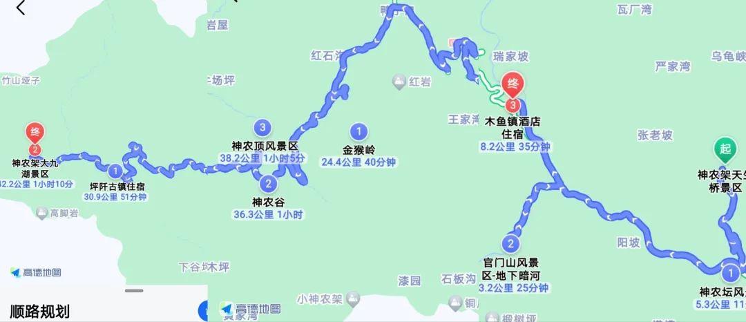 自驾:前往神农架林区,通常从宜昌(246公里,3小时15分)或十堰(234公里,3小时)出发,这两地均有机场。