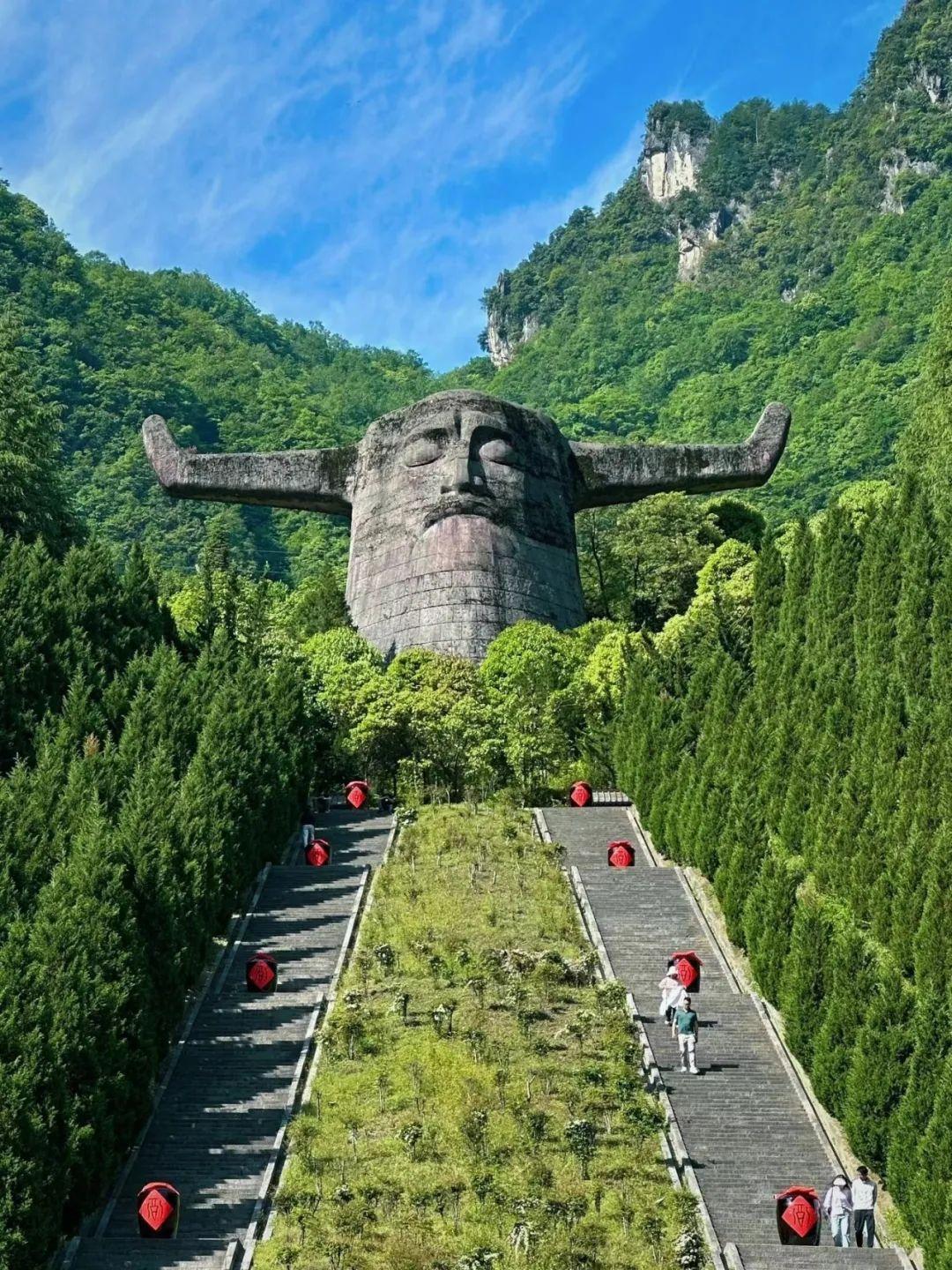 神农祭坛是为纪念炎黄子孙的祖先炎帝神农氏而建,祭坛广场气势恢宏,主体建筑是一个高21米,宽35米的神农巨型牛首人身雕像,是神农架的标志性建筑。